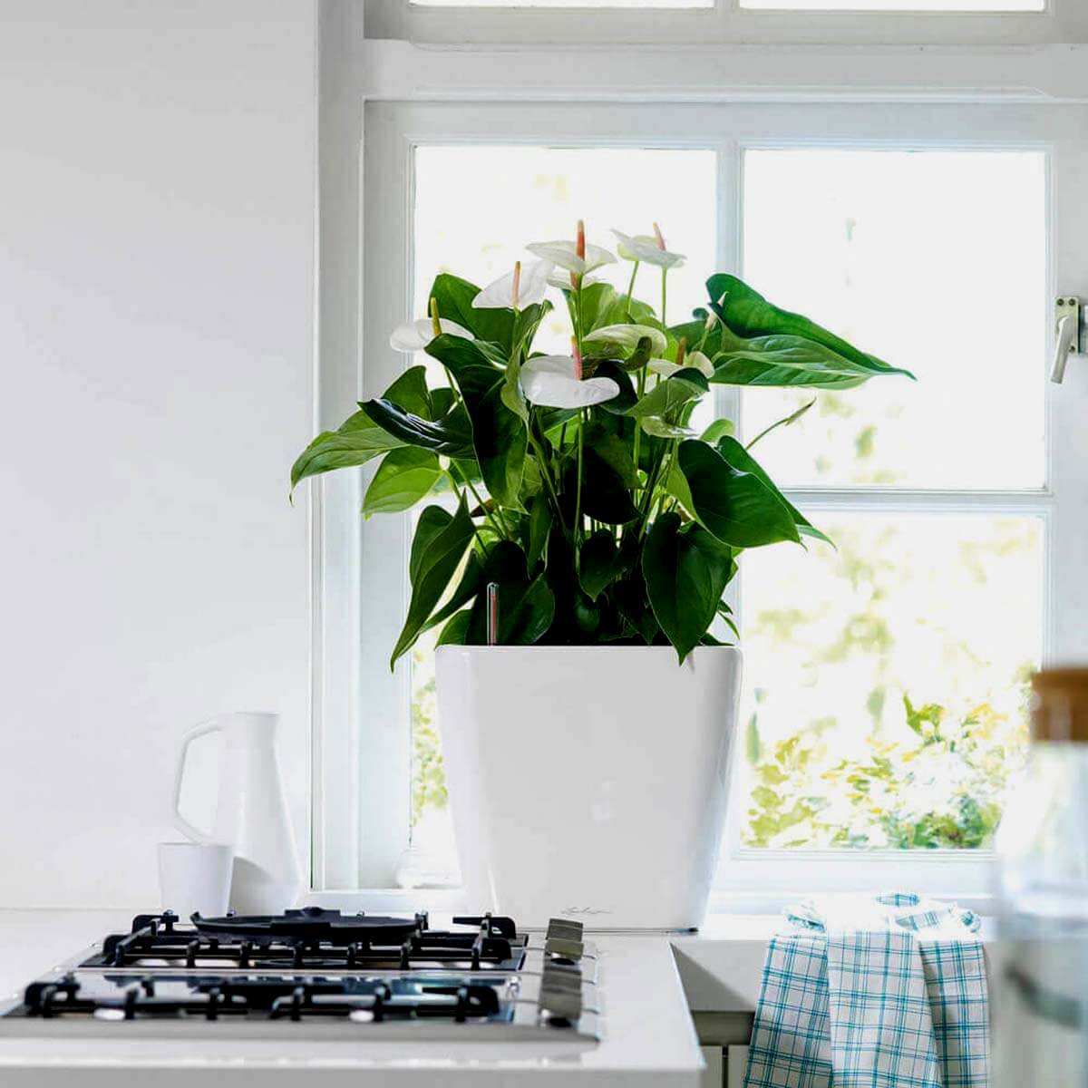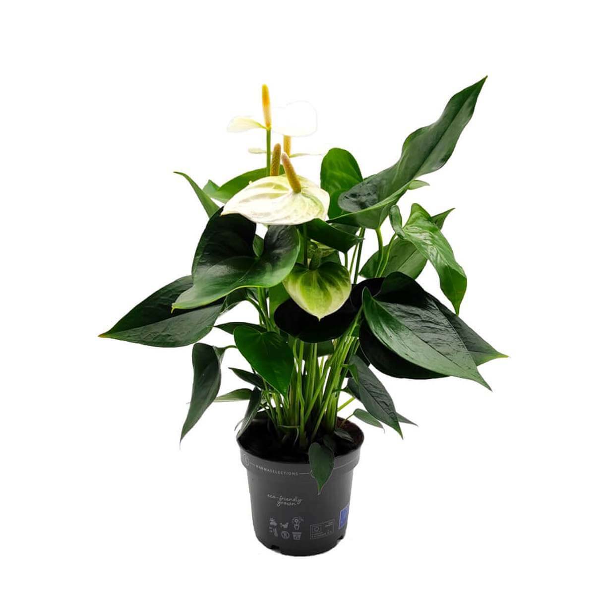 Jeśli uwielbiasz relaksować się wśród roślin filtrujących powietrze, Anturium Karma White to odmiana, którą powinieneś mieć. Klasyczne i eleganckie białe kwiaty subtelnie współgrają z roślinami domowymi we wszystkich barwach. Gładkie, pełne blasku liście wręcz tryskają świeżością!