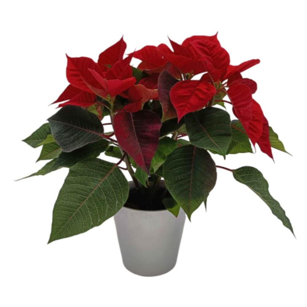 Gwiazda Betlejemska czerwona w srebrnej ceramicznej osłonce ⌇ Euphorbia pulcherrima